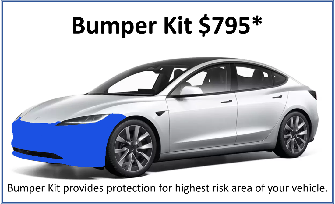 Standard Pricing: Prices below reflect standard vehicles (e.g., Tesla Model 3/Y, BMW 3 Series) in Gloss Clear.